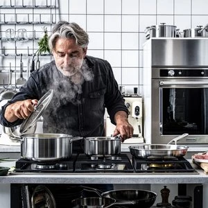 Du kan med fordel stable stegepanderne, hvis du har mere end en størrelse, da håndtaget er designet til at kunne stables- praktisk og pladsbesparende. Stegepanden er fremstillet af aluminium, som gør, at formen nemt bevares. Cookware stegepanden tåler desuden opvaskemaskine og ovn op til 160° C.
