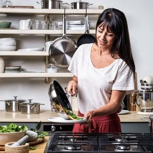 KitchenAid stegepanden i rustfrit stål med non-stick belægning gør det nemt at stege mad, uden at det sidder fast eller brænder på. Denne stegepande har en aluminiumsbund, der sørger for hurtig og jævn varmefordeling, samt en poleret overflade, som giver den et elegant udseende. Håndtaget er lavet af rustfrit stål med ergonomisk udformning, der giver et sikkert og køligt greb. Stegepanden er desuden ovnsikker op til 260°C og kan vaskes i opvaskemaskine, dog anbefales opvask i hånden for en længere levetid. Panden har en diameter på 20 cm, hvilket gør den ideel til stegning af mindre portioner eller tilbehør.