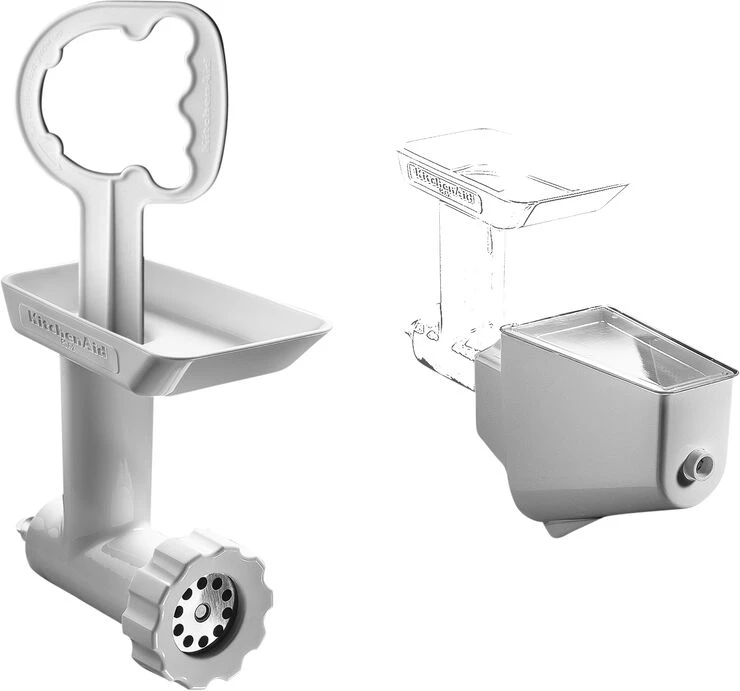 Tilbehørssæt til KitchenAid standmixer bestående af kødhakker og purépresse. 2 års garanti.
